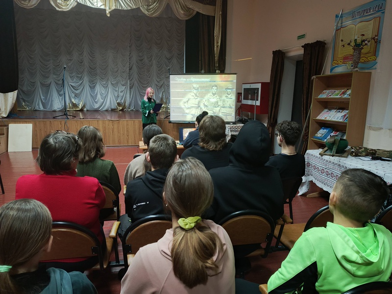 Методист по работе с детьми и молодёжью начала мероприятие рассказом о событиях 1979-1989 годов. Ребята с интересом слушали рассказ, а также вспоминали о воинах-интернационалистах — наших земляках, прошедших дорогами Афганистана.