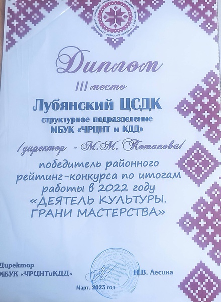 Лубянский центральный сельский дом культуры структурное подразделение Муниципального бюджетного учреждения культуры «Чернянский районный центр народного творчества и культурно-досуговой деятельности»