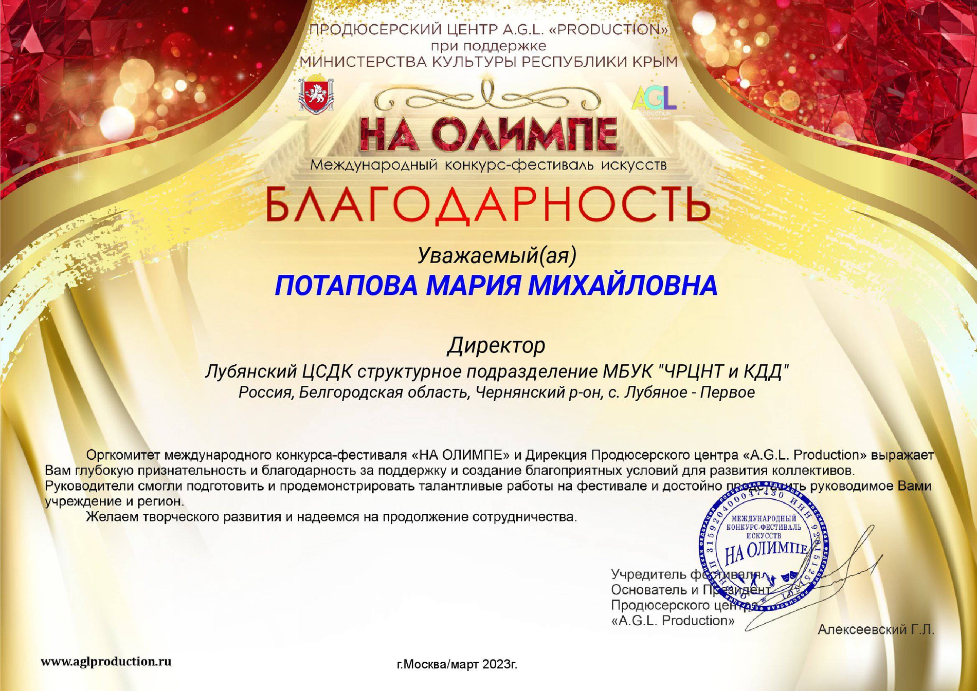 Лубянский центральный сельский дом культуры структурное подразделение Муниципального бюджетного учреждения культуры «Чернянский районный центр народного творчества и культурно-досуговой деятельности»