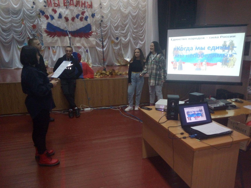 В фойе всех встретит выставка ДПТ - «Славься Отечество Российское!». Затем все перейдут в актовый зал, где зрителей и присутствующие разделятся на две команды и получат карты бывших стран советского союза на которых нужно будет разместить людей в национальных костюмах каждой страны. После чего всех увлечет квест, посвященный героям России. Победителей не будет, но кружка горячего чая и горячие блины достанутся каждому. Завершиться ночь искусств просмотром художественного фильма «Руссичи».